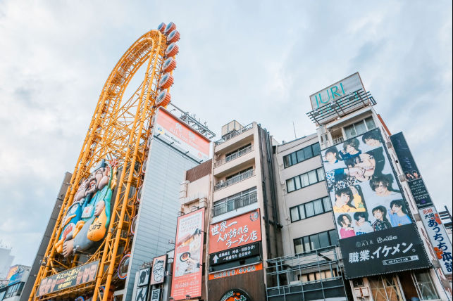 道顿堀川里,有一座十分显眼的摩天轮,这个财神爷摩天轮据说是世界上第一个椭圆形的摩天轮,当摩天轮运行的顶端的时候便能眺望到大阪市最靓丽的风景。