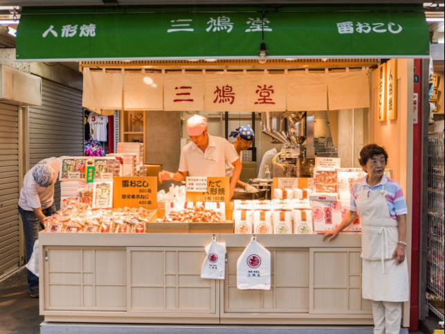 不过在这里人气最高的就是人形烧,它是一种传统的日本点心,主要的材料是以鸡蛋、面粉及红豆为原料经过搅拌之后,放入到模具当中烤制而成。它的造型没有固定说法,各种稀奇古怪的造型都能寻觅得到,不过其实人形烧最初刻印的是“七福神”,他在日本是代表吉祥好运的天神。
