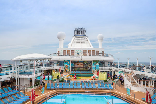 夜间的量子号甲板与白天可谓是万种不同,华灯初上之后,这里变成一个令人瞩目的星空电影院,倚靠在泳池边与迎面而来着的海风和星光做伴看一场浪漫无比的电影,果真是超凡的体验呀!