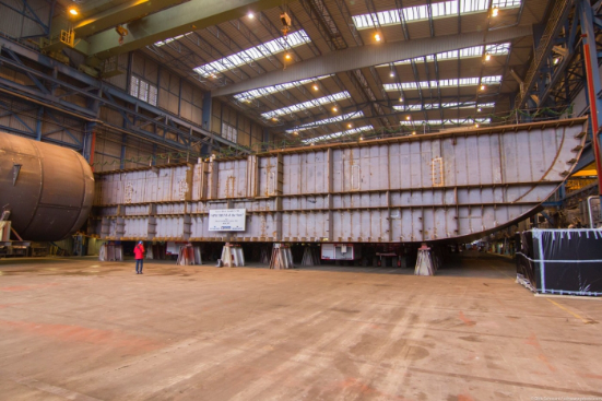 就在3个月后的2017年11月,建设达到首个重要里程碑——船体低层龙骨建设完成。试想一下这个几百米厂的巨大龙骨将撑起重达16万吨的海上城堡。