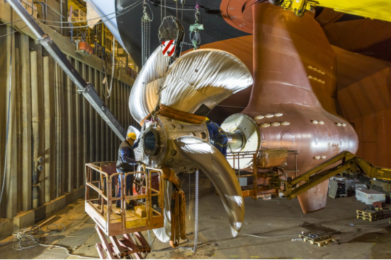 2019年2月,在仅仅18个月后,20.5百万瓦特的船舶推进器被完成安装,预示着整艘游轮的动力安装告以尾声。