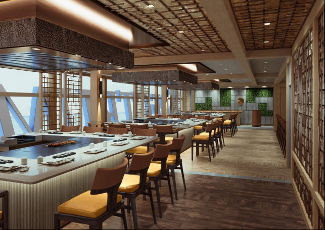 而光谱号上独有的的日式铁板烧餐厅,用日本古老传统的技艺料理新鲜美味的四方食材,鲜嫩弹牙的烤肉、活色生香的炒饭,就在铁板诱人的滋滋声和引人入胜的厨艺秀中创造了这美味至极的佳肴!