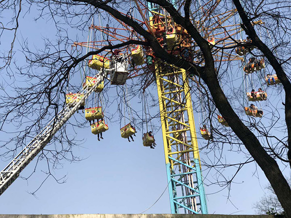 长沙一公园游乐场设备出现故障 本文图片均为现场目击者提供