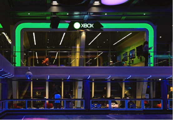 晚饭后去了 位于15、16层甲板的海上多功能运动馆。这里是量子号最大的室内活动空间,里面有碰碰车、滚轴溜冰、桌上冰球等娱乐项目。碰碰车7点左右开始运营,在船上还体验到了一秒回到童年的感觉。