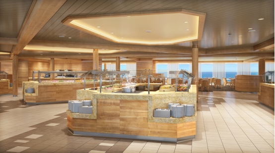 14层船尾:帆船自助餐厅Windjammer marketplace、海岸厨房餐厅Coastal Kitchen(地中海特色,只接待套房客人);