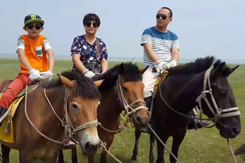 来到草原,不看马不骑马,那你来草原干嘛?哈哈,看见我一家三口坐在马背上没,真的很开心很高兴。