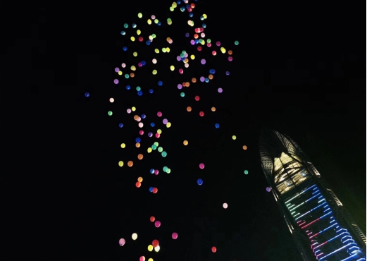 在遍地“吃鸡”礼盒的簇拥下,大型“惊喜盒”释放出五彩斑斓的希望之球,带动全场上千气球齐飞,许多人呆住了——这么前卫的开幕式,真的出自向来“低调”的盐田区么?