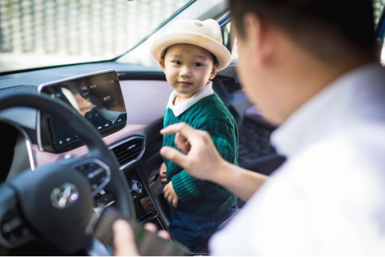 这辆车动力也挺强劲的,2.0T发动机搭配8AT,加速很快。孩子坐在第二排自在地玩耍,宽敞的空间他怎么折腾都行,路上他喜欢喊着“你好,北京现代”,通过百度智能网络2.0系统跟车对话,玩儿着玩儿着就到目的地了。