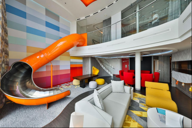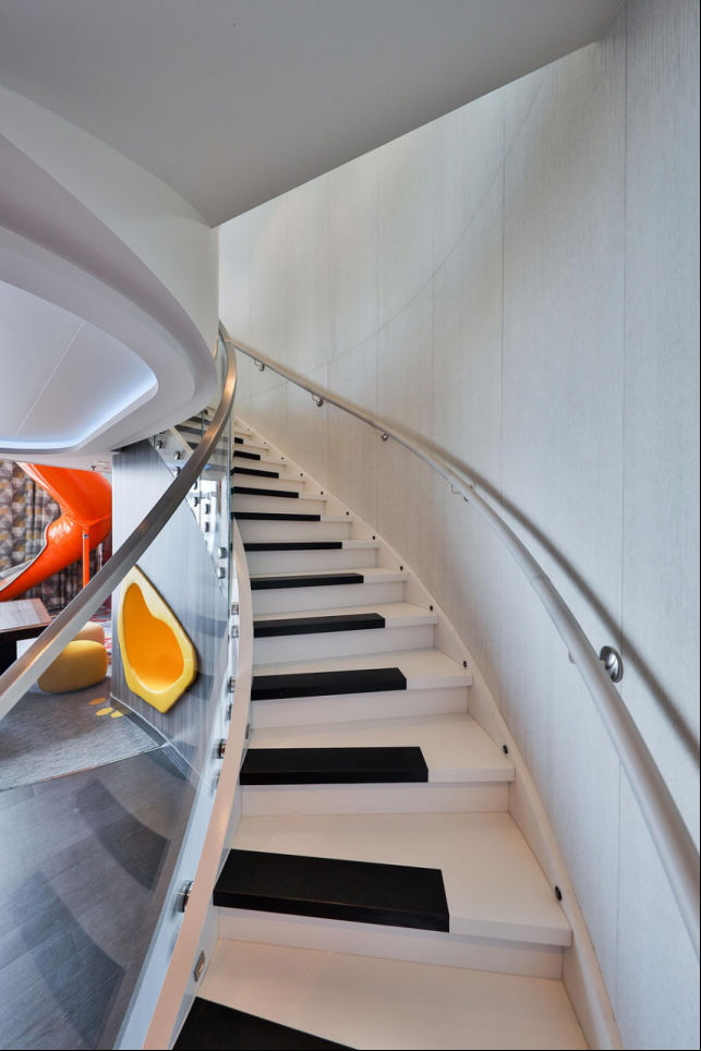 除了普通的楼梯以外 还给小朋友们安排从上层到下层的滑滑梯
