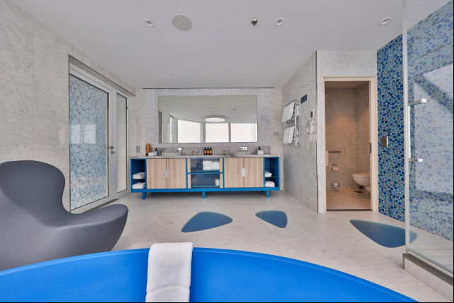 另外主卧设有一间无敌海景浴室 就是是在洗澡时 也能把蔚蓝色的大海净收眼底