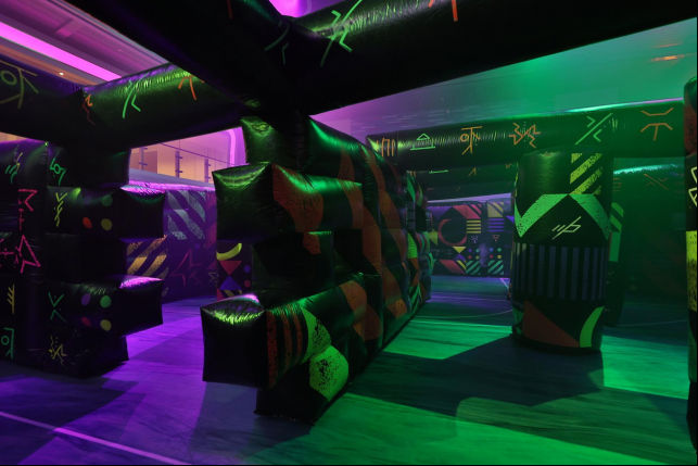在球体内部有4个蹦极床 给人一种穿越地心的失重感体验