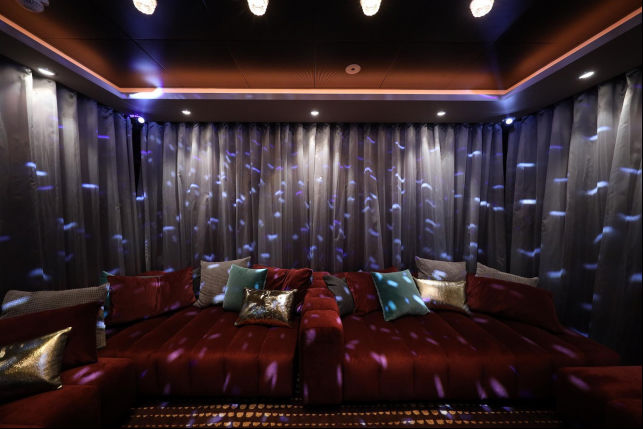 在家庭套房内配有卡拉OK和全套环绕声设备的娱乐室