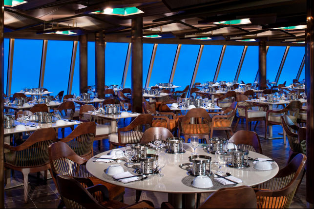 在光谱号甲板帆船自助餐厅内 吃着自己选择的食物 享受着船尾270度无敌海景