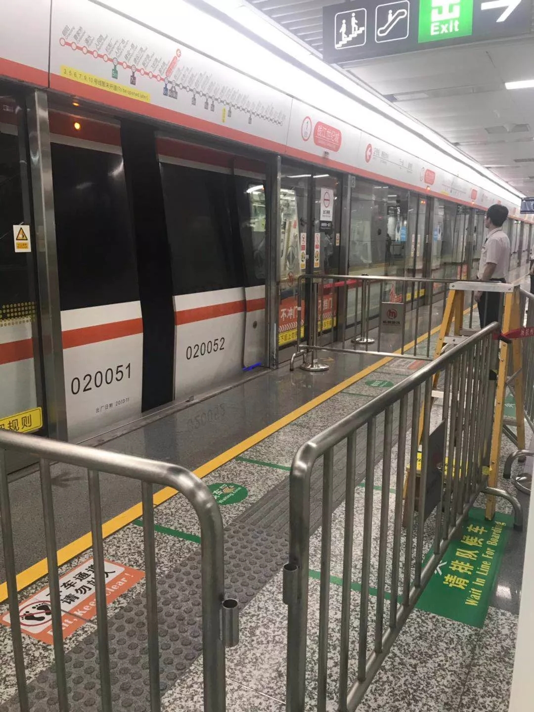 现场的玻璃碎末也已被清理完毕,边上还特意安排了两位工作人员维持秩序。记者在乘坐到钱江新城站下车时,工作人员会特意引导乘客到另一扇门下车,车辆通行目前正常,并无受到影响。