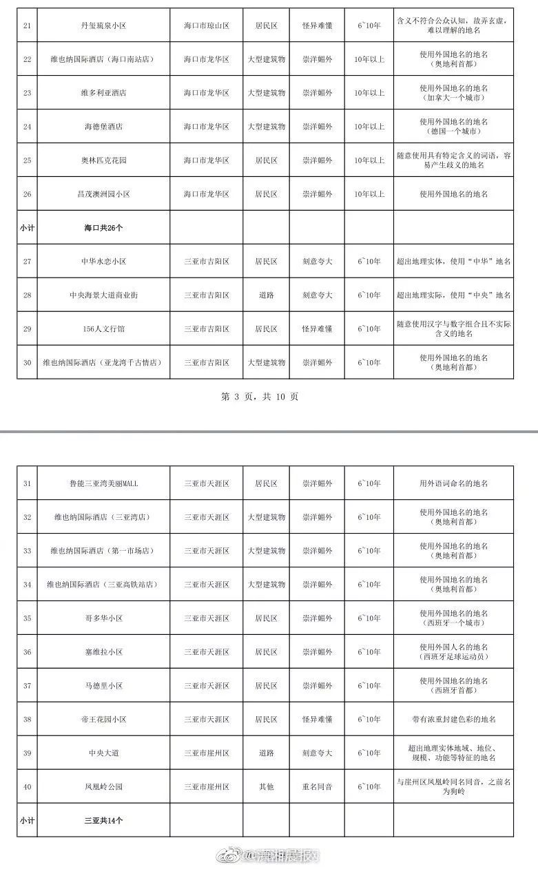 日前,海南省民政厅发布《关于需清理整治不规范地名清单的公示》,不规范地名84个,其中,海口共有26个、三亚14个。