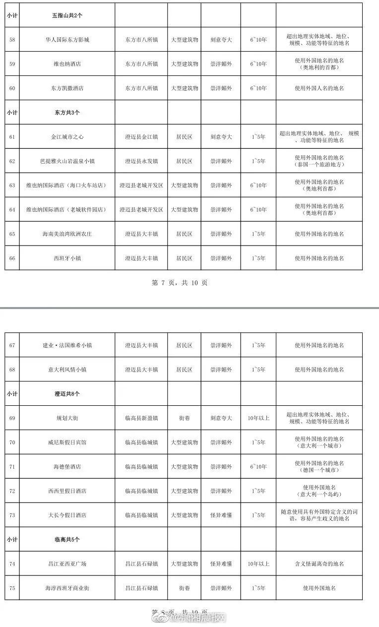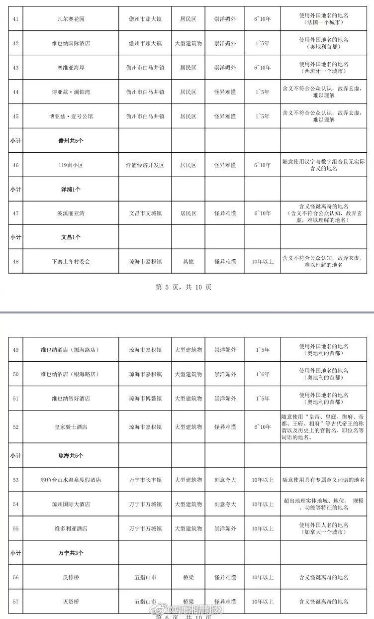 答:根据地名普查结果,再在市县民政、工商调查核实并充分征求意见的基础上,形成了《海南省“大、洋、怪、重”不规范地名名录》。