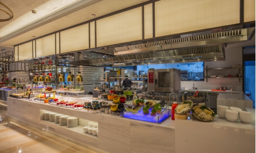 时至饭点,宾客可以在全日餐厅感受开放式厨房的互动魅力,享用全球各地的丰富美味自助餐。餐厅充满活力且极具感官体验的现代化氛围,令美食的过程远不止于味觉,更是视觉、触觉、嗅觉与味觉的综合呈现。