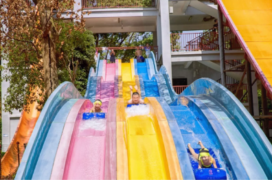 同时,紫龙湾还拥有众多亲子水上项目,既安全又充满趣味性的儿童水寨集合了雨蘑菇、水帘瀑布、喷淋柱等丰富设施,最适合家长与孩子一起嬉戏。还有更多亲子水上欢乐项目亟待探索!