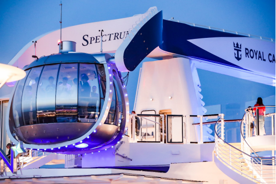 光谱号主打超凡的娱乐体验,北极星、南极球甲板跳伞、碰碰车这些项目融合了尖端科技,把传统项目融入了新意境。