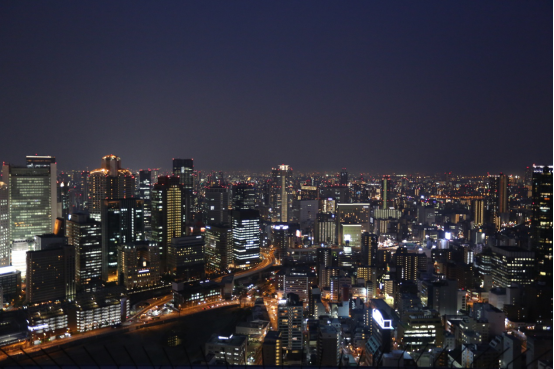 游轮停靠的第一站是大阪港。船越靠近岸边,远处的摩天轮就愈发清晰。大阪的摩天轮有全透明的,要排单独的通道。