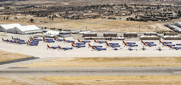 超过35架西南航空公司的波音-737Max客机停在“飞机坟场”,场面令人震撼