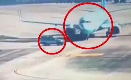 记者看到视频中,飞机左转上滑行道,SUV和一辆大巴车从远处开来。SUV本该和大巴一起在停止线外等待,却突然向前,径直穿过滑行道,差点与正在滑行的飞机相撞,飞机被逼停。