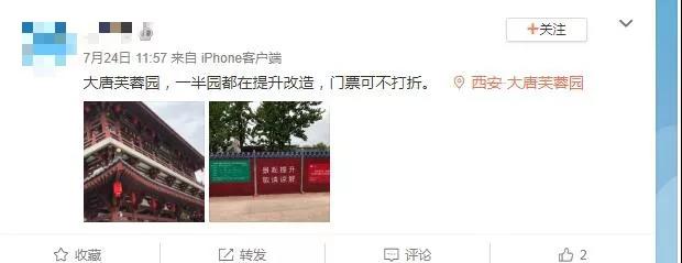 西安大唐芙蓉园景区售票负责人告诉记者,6月份园区内进行维护工程后,公司每日都在通过微博、微信和分布在园区内外的公示牌发布了提醒信息,告知游客院内维护情况,“有的游客可能逛园心急,没注意没看到公告”。