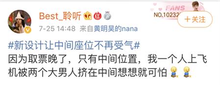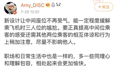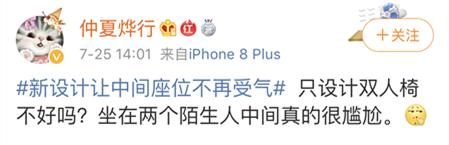 不过这样的设计对中间座位乘客是不是好事,已经引发了网友们的讨论: