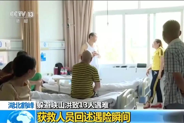 8月4日,湖北省鹤峰县躲避峡突发山洪,多人被困。截至6日下午,共有61人获救,13人遇难,失联人员全部被找到。目前搜救工作基本结束,后续将进一步开展现场排查。在鹤峰县中心医院,央视记者采访到遭遇此次山洪灾害的获救人员,他们回述了遇险瞬间。