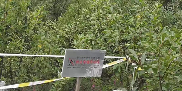 海螺沟森林公园搭设的警戒线。来源:磨西派出所