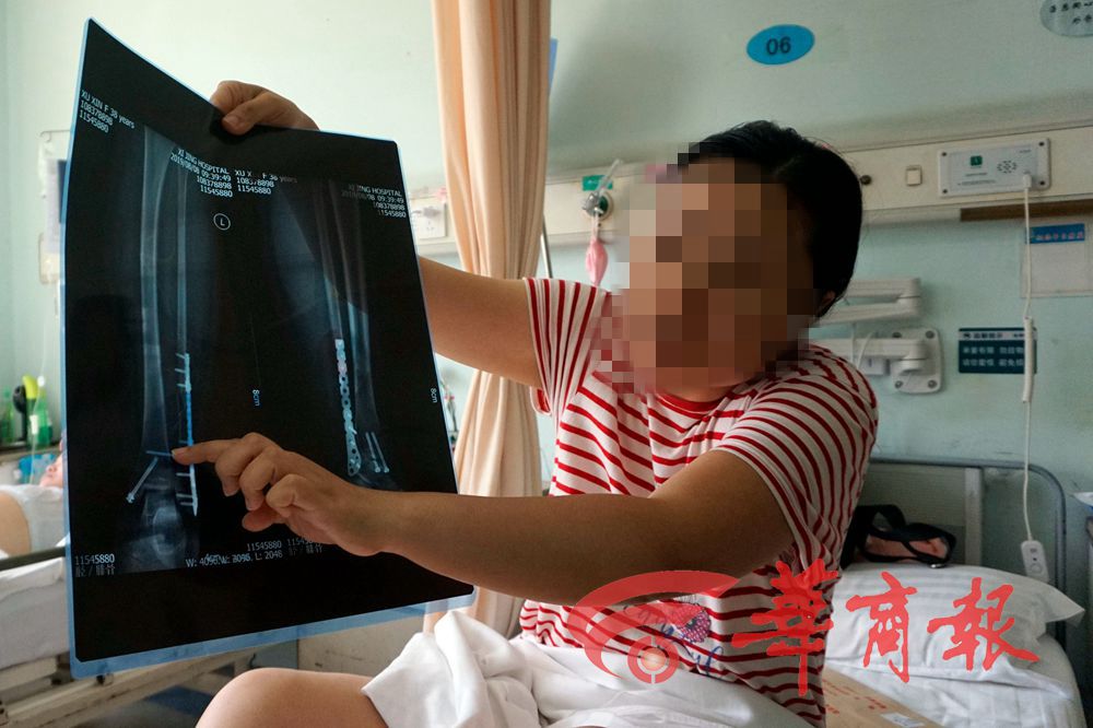 经诊断,徐女士左侧内踝骨折,左侧腓骨粉碎性骨折,左侧后踝骨折,左侧下胫腓联合损伤。目前徐女士已进行手术,正在康复中。之后还将再进行两次手术取出此次植入的钢钉钢板。