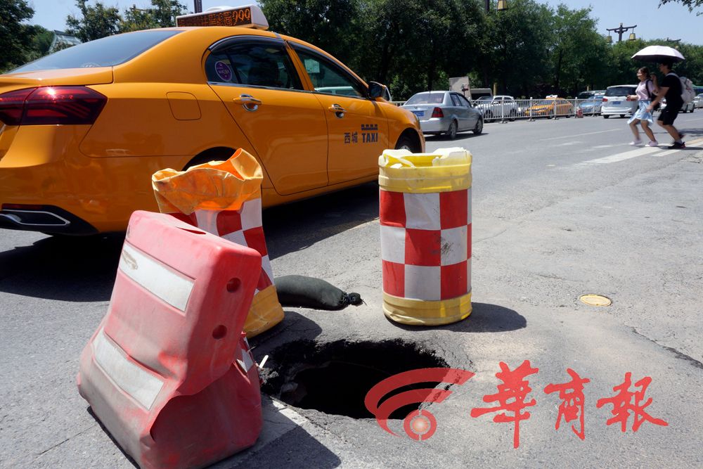 上午,华商报记者在华清池景区对面潼河巷南口处看到,肇事的这个没有井盖的窨井。该井约1米深,井口直径约1米。从现场情况看井口处有些塌陷,导致井盖掉进了井底。目前该窨井并未修复,仅仅是用三个防撞桶将井口围挡。“这个井起码有一个星期这样子了,最初都没有什么围挡,特别危险。”附近的一名群众说,“更没见有人把这个没井盖的井修一下。”