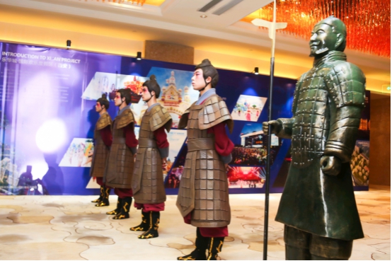 别具匠心的卷轴签到、秦俑迎宾之后,兰州市城关区旅游协会会长魏学强和乐华恒业主题公园公司总经理秦曦分别致辞。