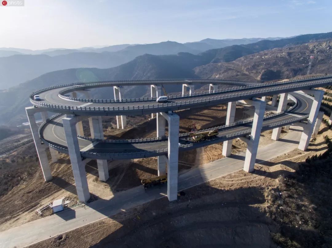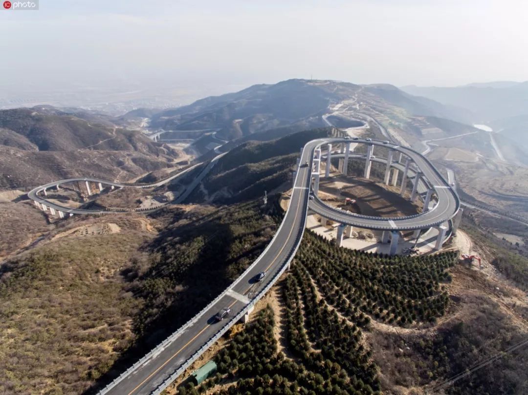 山西太原的天龙山上,有条路被誉为“云端上的旅游公路”,公路上一个三层回旋设计的高架桥惊艳中外。