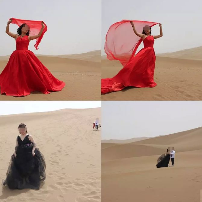 “加上吃住行费用,花了几万块钱去旅拍,就拍出这种质量的婚纱照,沙漠,看不出沙漠的样子;草原看不出草原的样子;照片模糊不清,甚至大部分照片没有对焦,更可气的是很多照片不是嘴歪就是闭眼。”