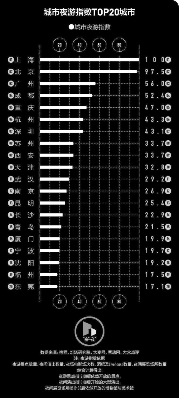 以下为49个二线及以上城市夜游指数完整排名结果:
