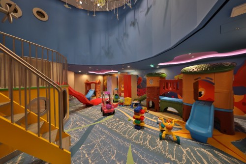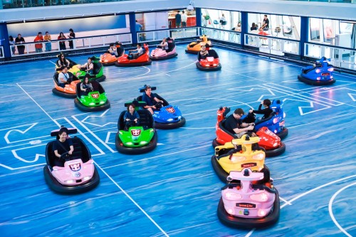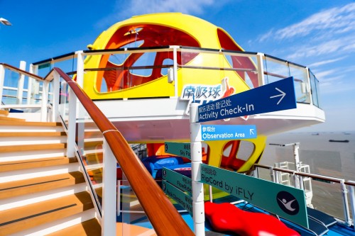 而对带小孩的我们而言,亲子娱乐项目也是此行的重中之重!登船后在顶层甲板俯视就能看到位于顶层甲板船中的巨大面积的亲子娱乐设施。在甲板跳伞和甲板冲浪中让自己成为绝对运动大师,或者与家人享受轮滑、篮球、乒乓球等经典游戏。