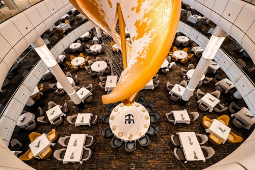 而我和老公对全新的南极球可谓是觊觎已久,我们也了解到船上可以“寄存”小朋友的海上历奇中心!在预定好南极球体验后我们就把宝宝送去了海上历奇中心,这里为不同年龄段的孩子提供了包括潜水员、探险者和航海家在内的众多娱乐教育活动,我们的宝宝在这的下午都不愿意离开。最后我们还是用戏水餐厅的儿童套餐吸引宝宝才愿意离开这里呢! 位于14层甲板的戏水餐厅,紧邻儿童戏水区域。绚烂的色彩配上童趣造型的桌椅,就连新鲜食材经由大厨匠心巧手所变成的营养餐也是超级美味。在这里我们也可以暂时忘记一切,与宝宝共同度过精彩难忘的一餐。
