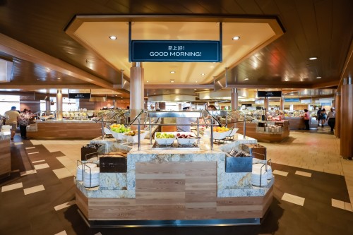 民以食为天,我们登船的首日的第一顿午餐,就在全日制主餐厅。每次提到全日制餐厅,大家想到的都是酒店的自助餐厅,而海洋光谱号的全日制餐厅与传统酒店自助餐厅自然不能同日而语,将4间传统游轮餐厅合并的勇气可绝对不是每一艘游轮都有的!在能容纳近2000人的主餐厅中,你将会体验到的是一站式的中西餐饮,适合全家共享,满足每一位家庭成员的美味追求!