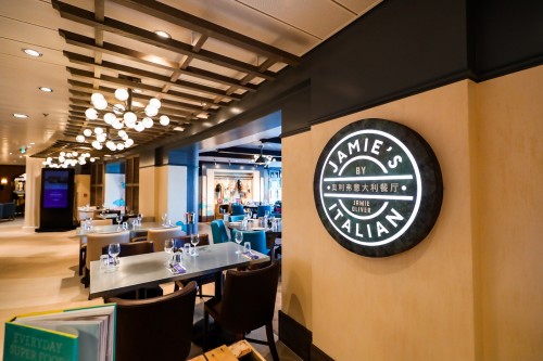 老公说在皇家加勒比一定要体验一次正宗西餐,我们接下来体验的就是意大利名厨开设的同名餐厅Jamie’s Italian!在这里,即使是质朴的菜肴依旧选用当季时令食材,并以手工制作。不妨先在托斯卡纳豆卷上撒上橄榄油作为你的开胃菜,然后试一试每天在后厨现做的美味意大利面,南瓜意饺或者美味新鲜的扁意粉,还有更多的主菜、小碟、绚丽的烧烤拼盘以及难以抗拒的甜点。
