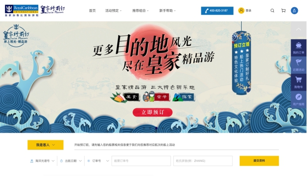 预定皇家加勒比超凡观光非常简单,只需要在预定船票后登陆“皇家行前订”平台https://www.pcprcl.com/Rccl.Pcp/Home/Index 通过预定的船只名称、出航信息、订单号和姓名就可以快速查询游轮订单,进行线上预定了!