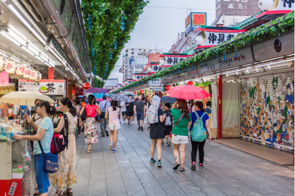 直到现在以浅草寺为中心的地区,依旧是东京乃至全日本,旧江户味道最浓厚的地方。“仲见世”是浅草寺前一条每天都人潮涌动的街道,这条长约300余米的参道上聚集有上百家不同的商铺,不管是御守、布袋还是各种食物等一系列的日式产物都能在这寻觅到它们的踪迹。