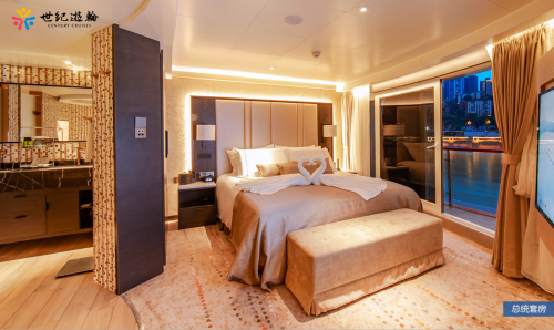 位于6楼船头的两间总统套房,每间面积为85平米,拥有270°超大私人阳台。占据了游轮制高点的观景台,拥有全船最佳无敌风景,这里有阳光、江水、安逸和遐想,有微醺和风景融合在一起,最美不过如此。