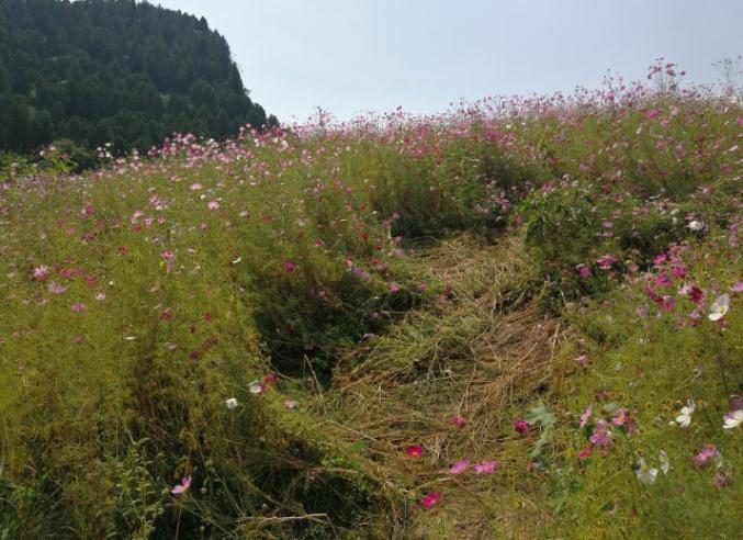 短短几天的时间,这片格桑花海部分区域,竟然被不文明游客硬生生地踩出一条又一条的“路”来。