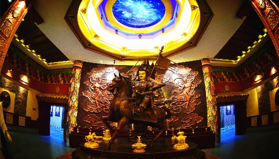 四川省甘孜藏族自治州甘孜县文化底蕴深厚,县内居住有藏、汉、回、苗、彝、壮、布依、满、白、土家等11个民族,藏族人口占95%以上,由于多民族世代群居,造就了甘孜县多民族文化及民俗历史交融混杂的地域文化特色。而在甘孜县人口占比95%以上的藏族人民心中,格萨尔王则是一个流传已久的传说。身为莲花生大士的化身的格萨尔王,一生戎马,骁勇善战,扬善抑恶,传播文化,成为藏族人民引以为自豪的旷世英雄。格萨尔王一生降妖伏魔,除暴安良,南征北战,统一了大小150多个部落,岭国领土始归一统。至今,甘孜县域内仍然存有许多格萨尔王的传说和遗迹,该县依托这一深厚的文化基底,以全域旅游助推脱贫攻坚,通过文化的深度挖掘和项目的独特设计,高规格新思维大手笔规划打造了格萨尔王城。