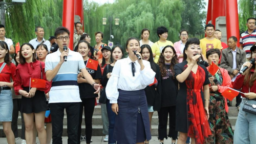 “我和我的祖国,一刻也不能分割,无论我走到哪里,都流出一首赞歌”。三位主唱的深情演唱,芊芊学子的稚嫩歌声都深刻表达对祖国的热爱。活动现场,众参与者手拿国旗,一首《我和我的祖国》激发了观众心中的爱国情怀,广大人民群众都自主的跟着参与者一起歌唱,用歌声歌唱祖国,以行动表达爱国之心。