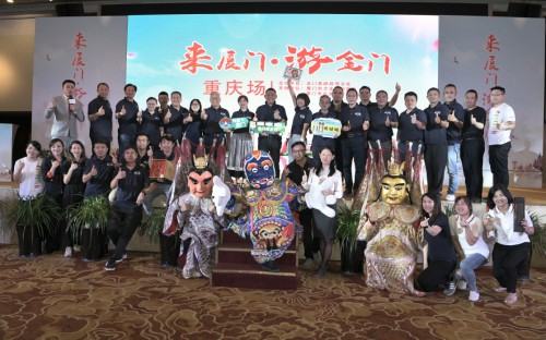 2019年8月29日下午,由金门县政府观光处、厦门市文化和旅游局、厦门市台港澳事务办公室、金门县工商投资发展策进会、金门县旅行商业同业公会、金门观光特产协会、金门酒厂股份有限公司、金门酒厂(厦门)贸易有限公司、王大夫一条根、大方胡须伯、昇恒昌股份有限公司、金湖大饭店、元翔(厦门)海岸有限公司、厦门市观光国际旅行社有限公司等金门、厦门政企单位组成的“旅游推介团”,于重庆举办“来厦门·游金门”旅游推介会,吸引当地旅游主管部门、主要旅行商、新闻媒体等逾百人共同参与。