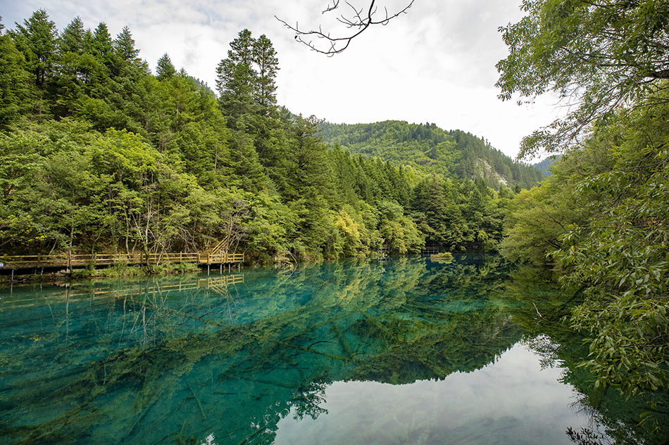 2019年8月8日,四川阿坝州,九寨沟景区孔雀河道。视觉中国 资料图