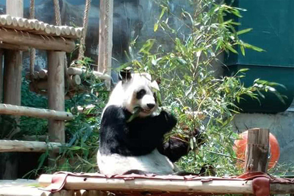 9月17日,“创创”的伴侣“林惠”在清迈动物园内独自进食。