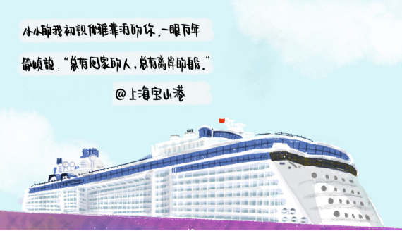 初抵上海宝山港,巨大的海洋光谱号犹掩琵琶半遮面地出现在我们面前。
